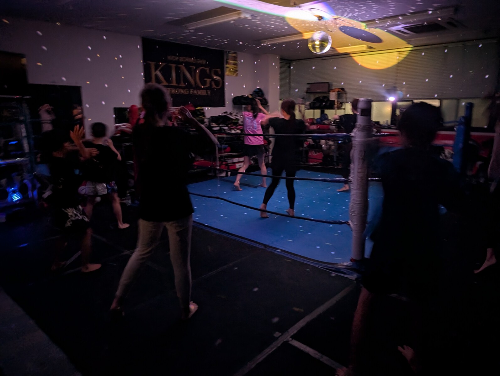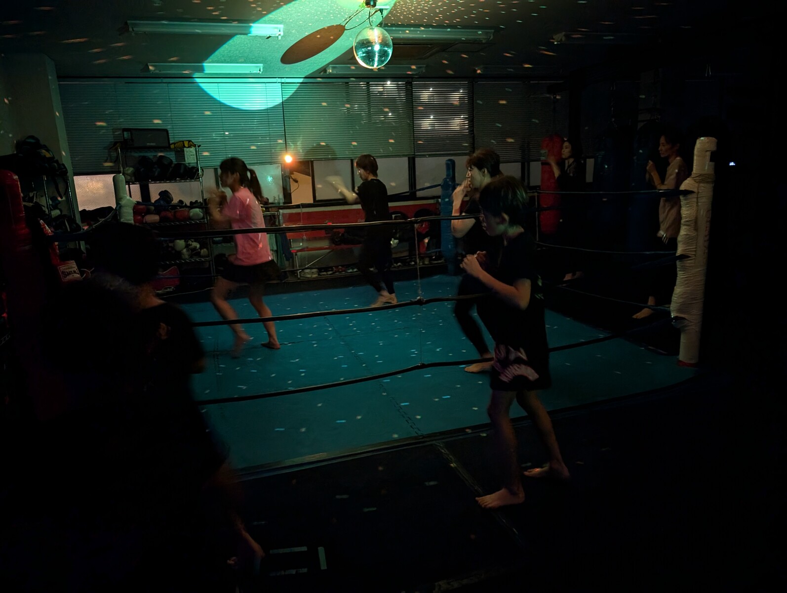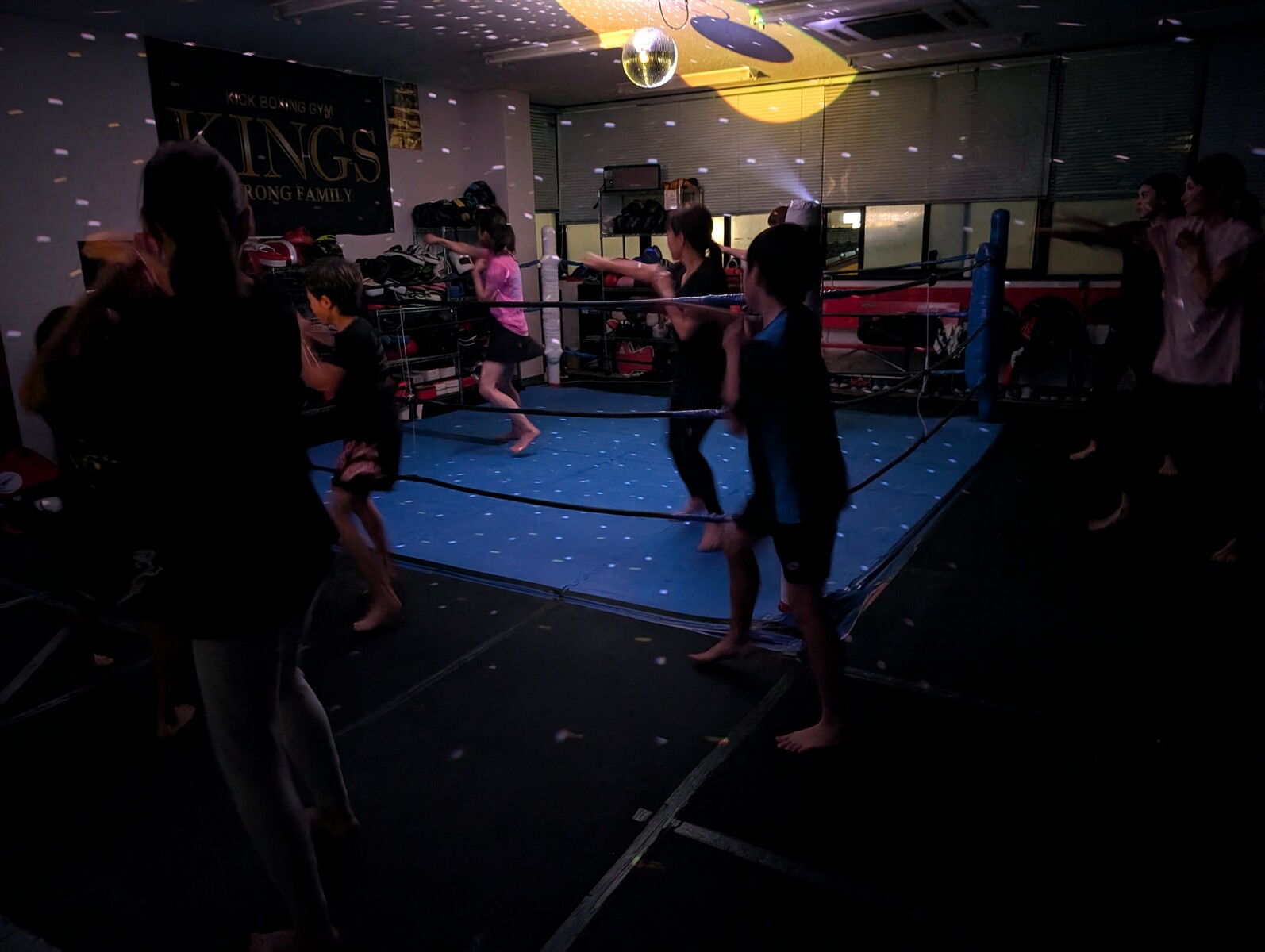 ジムを暗くしてミラーボールの灯りで行う